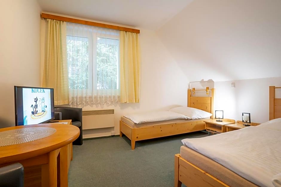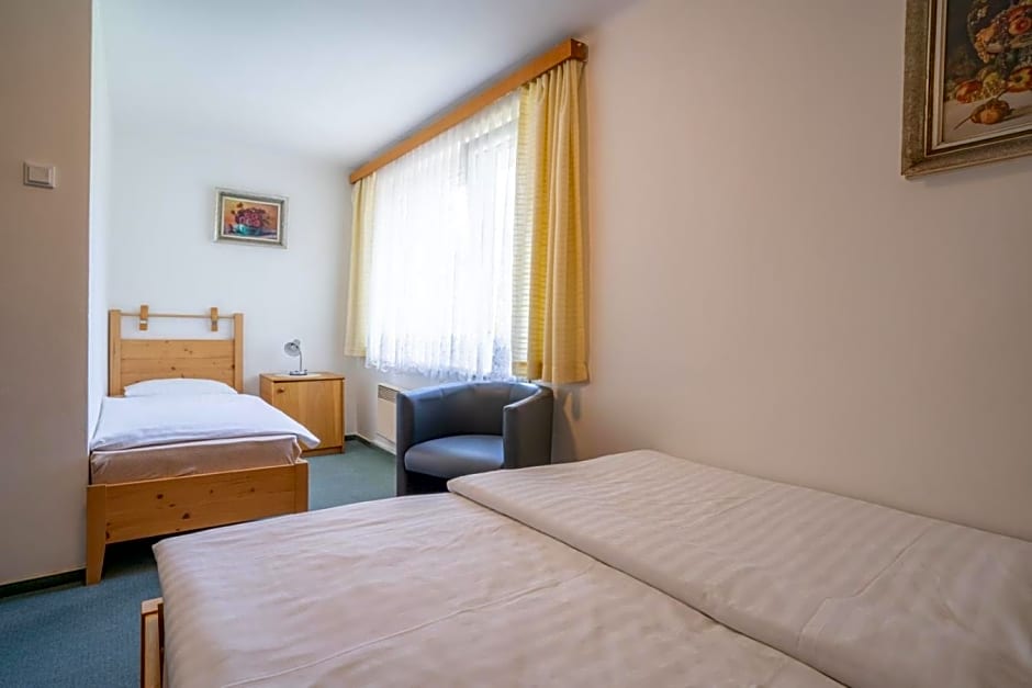 This triple room features a satellite TV. This room is located in Penzion Eden, 2133 ft from the main building. It offers cheap tourist accommodations.